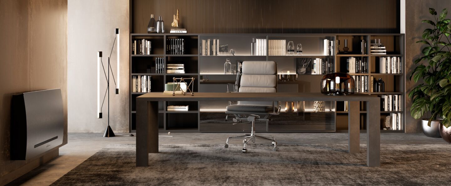 The combination of the brushed aluminium front panel and black side panels creates an effect that is perfect for spaces that require concentration and tranquillity. Its simple, clean, and essential lines combine with surprising and reliable performance to create an essential and innovative furnishing in line with current interior design trends.